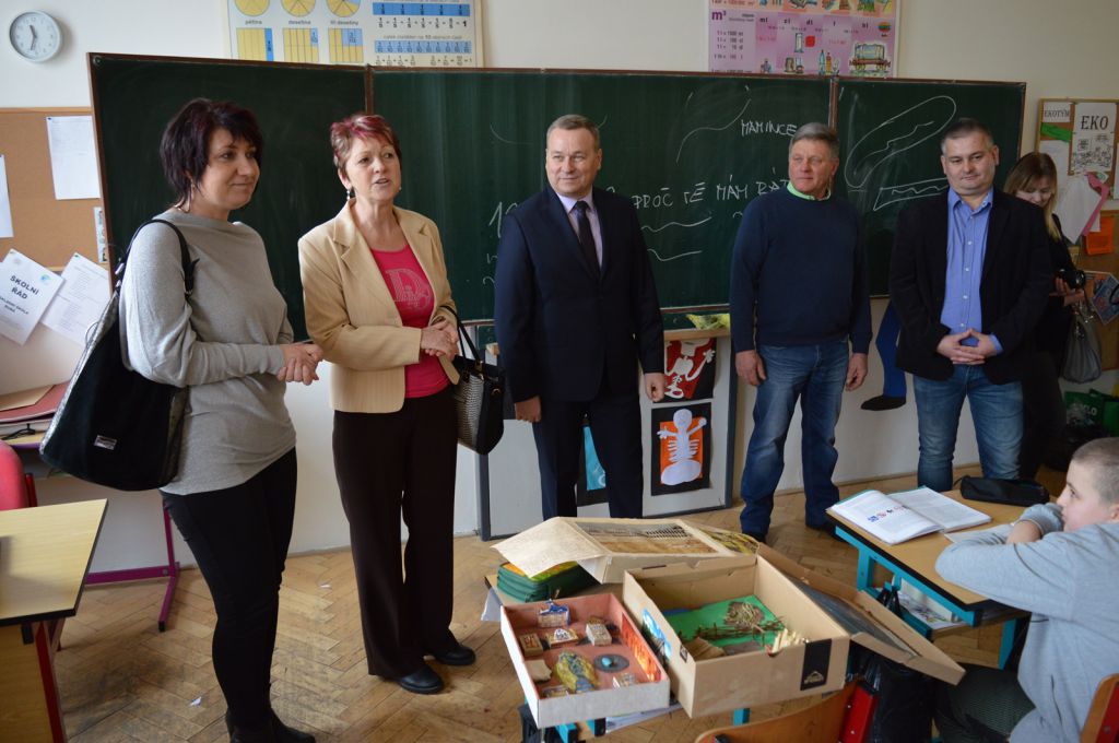 Naši hosté si spolu se žáky vyzkoušeli práci s interaktivní tabulí,