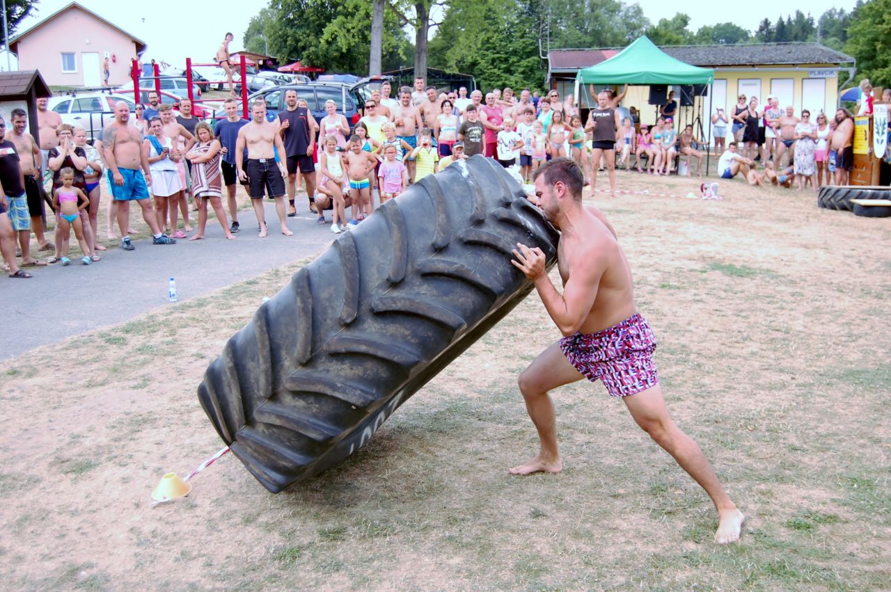 13:00 Vrh koulí, Zdvih činky, Přetahování lanem, Skákání v pytli, Běh v písku, Převracení pneumatiky, Páka