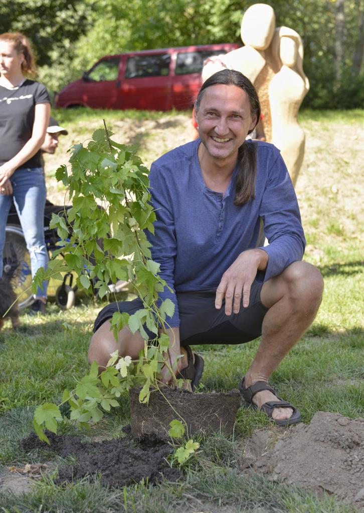Představit se sem přišli všichni čtyři dřevosochaři, kteří zde stejně jako liberecký hejtman vysadili jednu sazenici chmele.