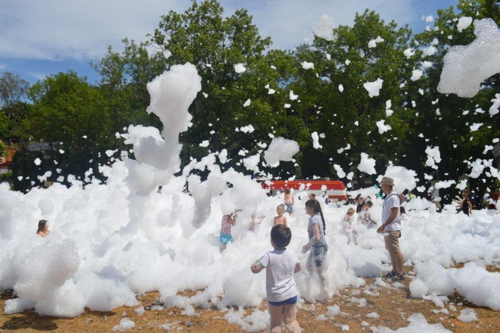 Hasiči spolu se svými zákupskými kolegy připravili pro děti během odpoledne oblíbenou pěnu, v níž se děti pořádně vyřádily.