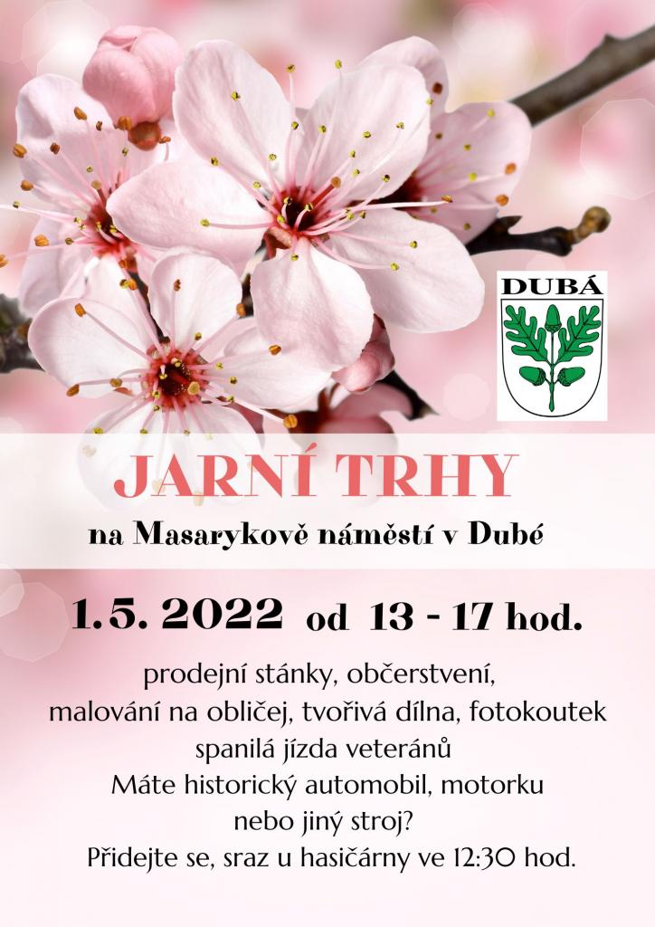 1. května 2022 od 13 hodin Jarní trhy na náměstí města Dubá