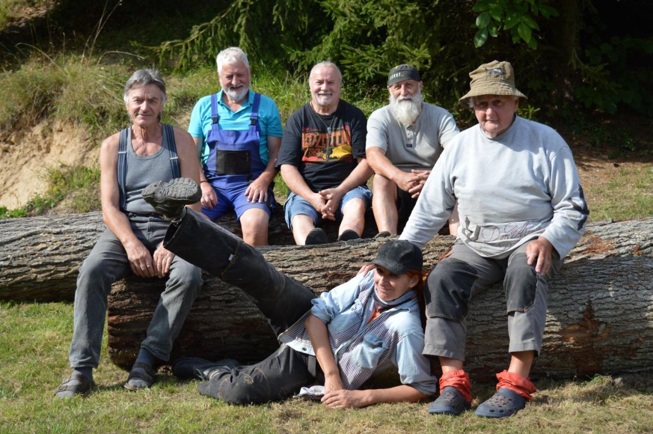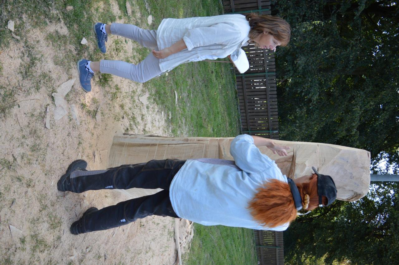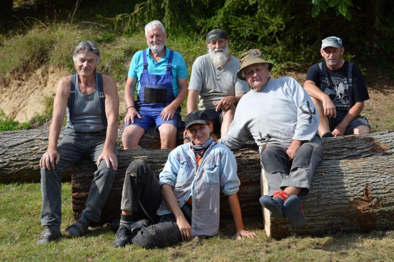 Jaromír Dědek, Marta Novotná, Jan Viktora a Petr Vičan se pustili do kmenů na koupališti v Nedamově v rámci 8. ročníku dřevosochání.