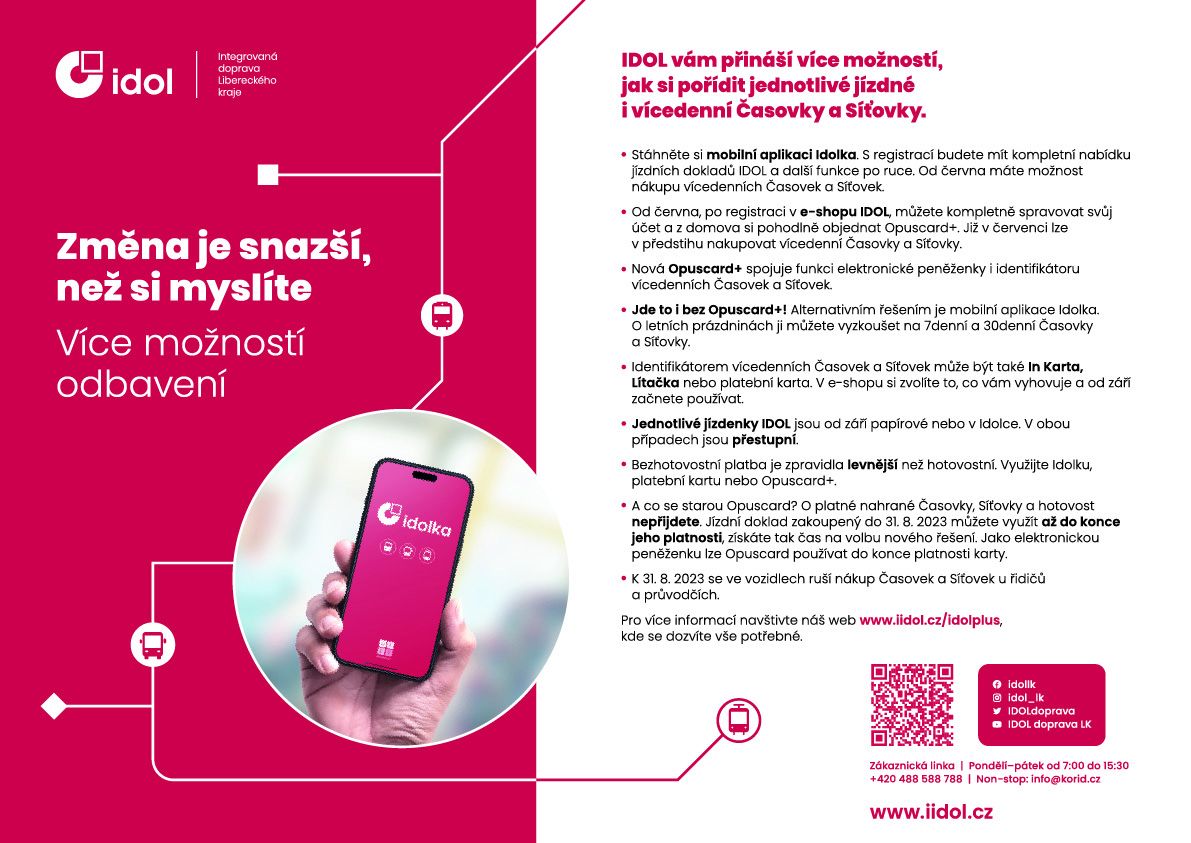 Od 1. září 2023 bude systém IDOL+ plně spuštěn s výjimkou MHD v Liberci, kde až do konce roku bude probíhat instalace nových prodejních terminálů.