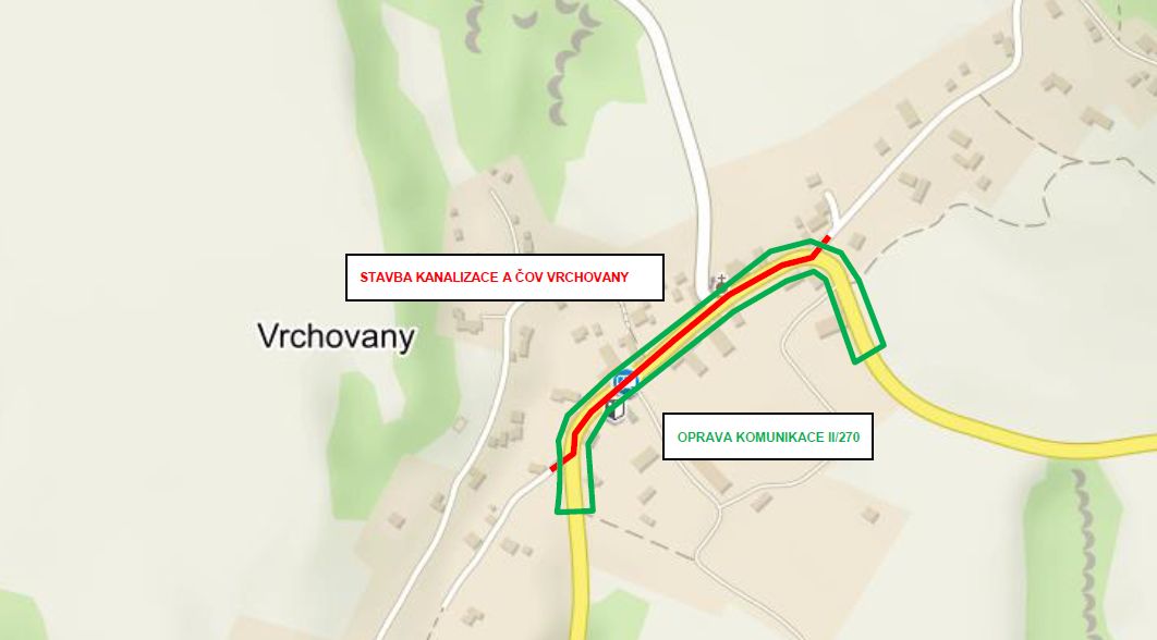 Obec Vrchovany se veřejné dopravy v zájmu rychlého a bezrporblémového průběhu této náročné stavby dočasně zřekla.