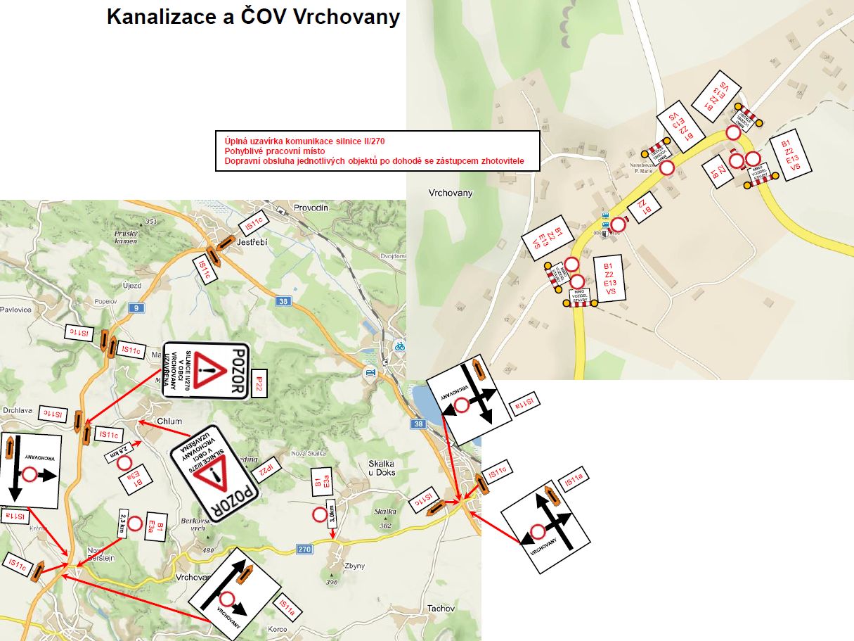 z důvodu výstavby kanalizace a rekonstrukce silnice II/270 mezi Dubou a Doksy v obci Vrchovany, dochází od pondělí 12.4.2021 k úplné uzavírce této silnice. Z tohoto důvodu jsou na linkách veřejné linkové dopravy zavedeny výlukové jízdní řády, spoje uzavírku objíždí po silnicích I.třídy přes Jestřebí a Staré Splavy. Obce Skalka a Zbyny jsou obsluhovány po příjezdu do Doks a před odjezdem z Doks vybranými spoji. Posední odpolední spoj je do Skalky a Zbyn veden jak radiobus. Některé spoje jsou o cca 10´ uspíšeny/opožděny na odjezdu/příjezdu.