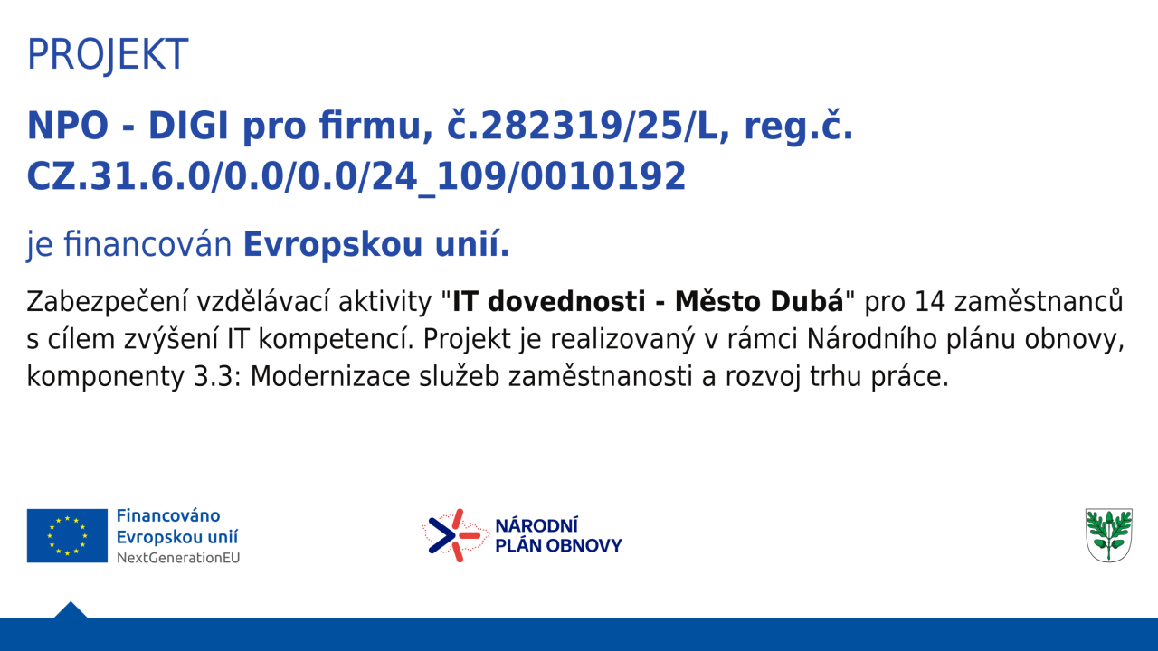 Tento rekvalifikační kurz probíhá v rámci projektu NPO - DIGI pro firmu