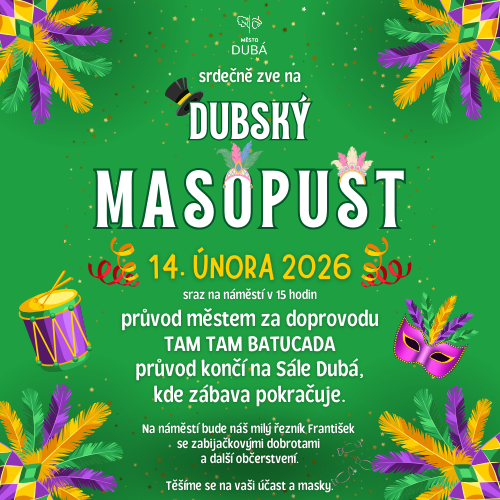 Město Dubá vás srdečně zve na masopust, který se uskuteční 14. února 2026.