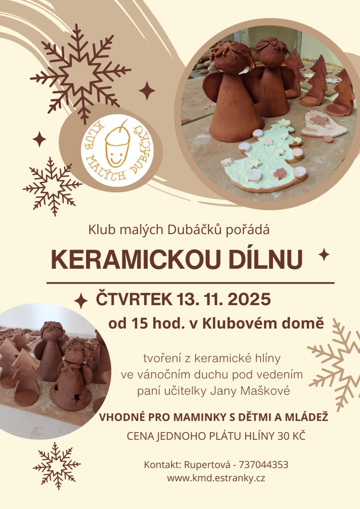 Klub malých Dubáčků zve na keramickou dílnu,