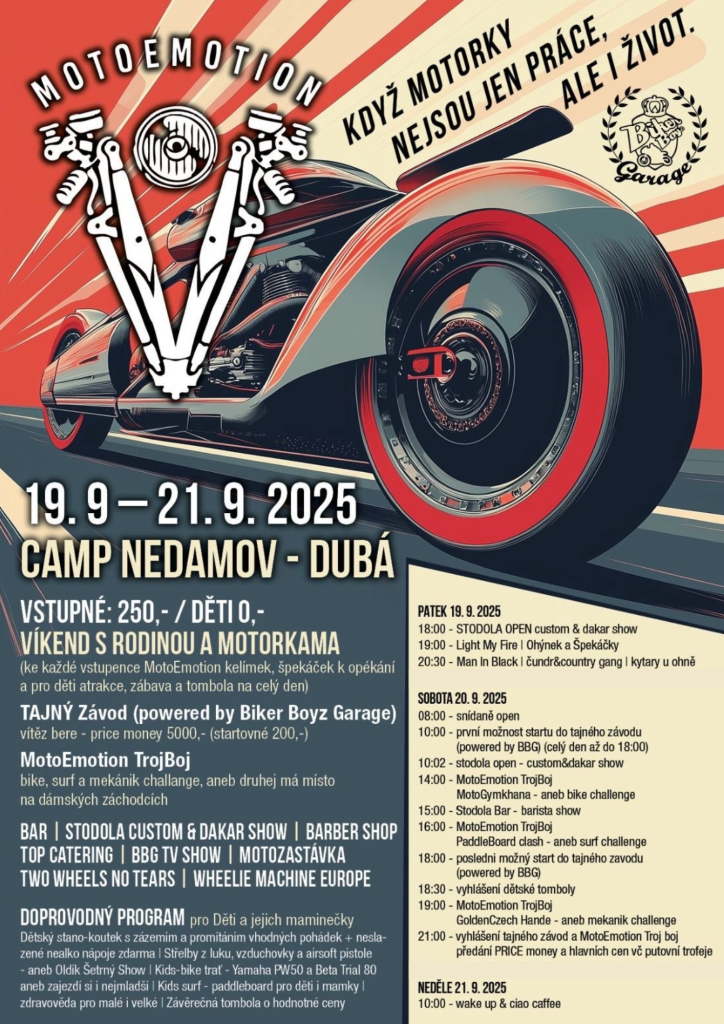 a MotoEmotion TrojBoj, který zahrnuje bike, surf a mechanik challenge.