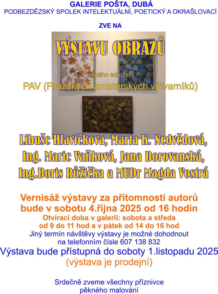 vernisáž výstavy s názvem Obrazy PAV,
