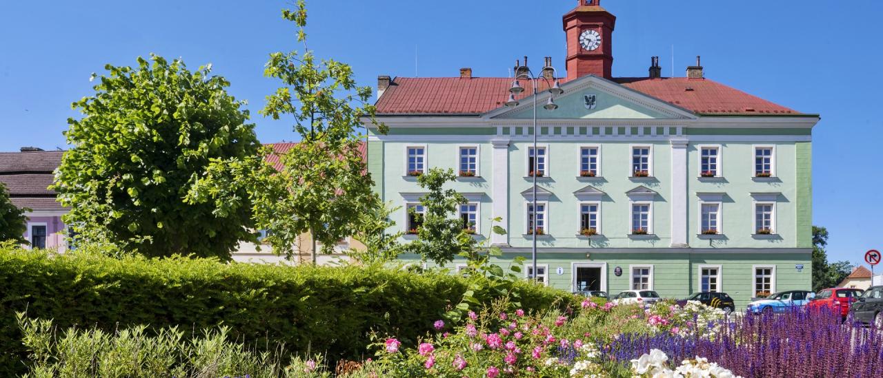 Empírová radnice z r. 1851 na náměstí v Dubé.