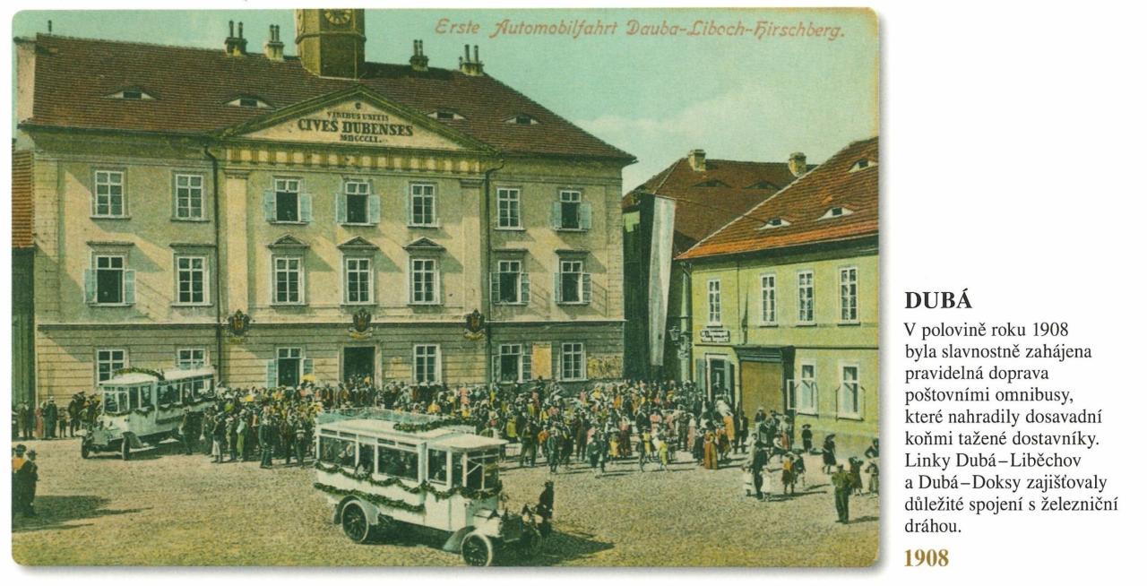 Ve 14. století se vyvinula městská samospráva a tak vznikla i potřeba výstavby radničních domů. V roce 1391 se objevuje písemná zpráva o Dubé jako městě. Již v té době bylo náměstí obestavěno kolem dokola. Radnice tedy byla vysunuta před zástavbu v západní části náměstí (vzhled ani výstavbu nelze doložit). Tato budova byla pravděpodobně poničena požárem v roce 1695, kdy shořely důležité listiny a knižní zápisy. K roku 1749 se nám objevuje alespoň přibližná podoba velkého jednopatrového domu s vysokou střechou a věžičkou uprostřed. Přichází však další pohroma. Z 3. na 4.6.1845 se rozmohl v Dubé velký požár, při kterém kromě mnoha domů, stodol, kostela Nalezení sv. Kříže a fary shořela i radnice. Hasičům se podařilo zachránit městský archiv s veškerými doklady, městské knihy a památeční křesla z roku 1738.