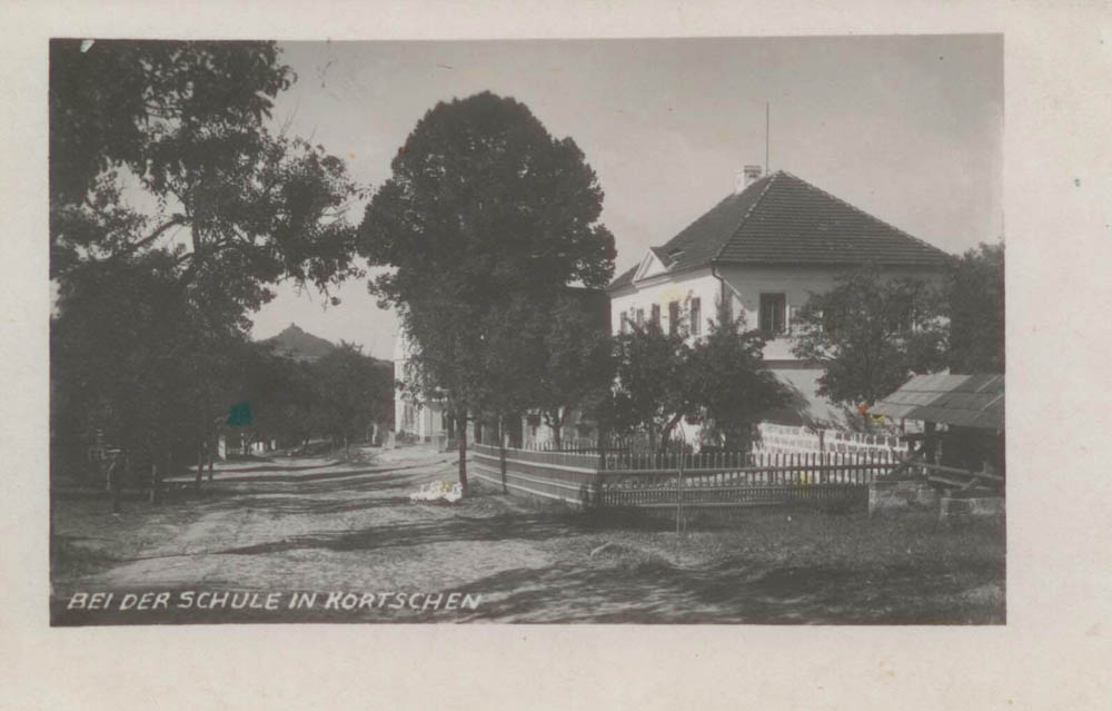 Školní vyučování probíhalo v Korcích od roku 1778, děti učil vysloužilý voják Jan Jiří Luniak nejdřív v obecní pastoušce, nakonec Luniak vyučoval ve vlastní chalupě čp. 28. Tento dům však dnes už neexistuje. První školní budova byla postavena v roce 1807, byla to roubená stavba na zděné podezdívce čp. 8 v záhybu silnice na Doksy. Počátkem 70. let 20. století vznikla iniciativa, že cenná stavba, která překážela provozu na silnici, bude rozebrána a postavena na jiné parcele. K tomu ale bohužel nedošlo a stavba byla demolována. Novější, dodnes dochovaná školní budova čp. 30 pochází z doby kolem roku 1890. Vyučování v Korcích bylo zrušeno v roce 1965, kdy počet žáků poklesl pod 10. Krychlová jednopatrová stavba v klasicistním slohu slouží nyní jako obytný dům.