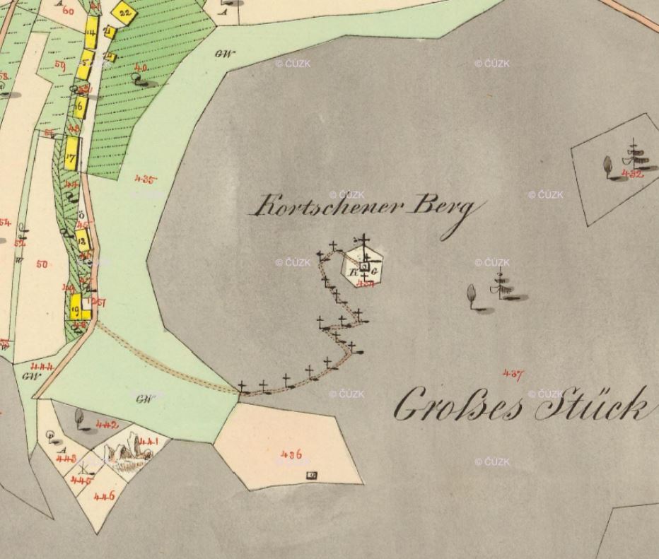 Zastávka na návsi prastaré vsi; Křížová cesta na Korecký vrch