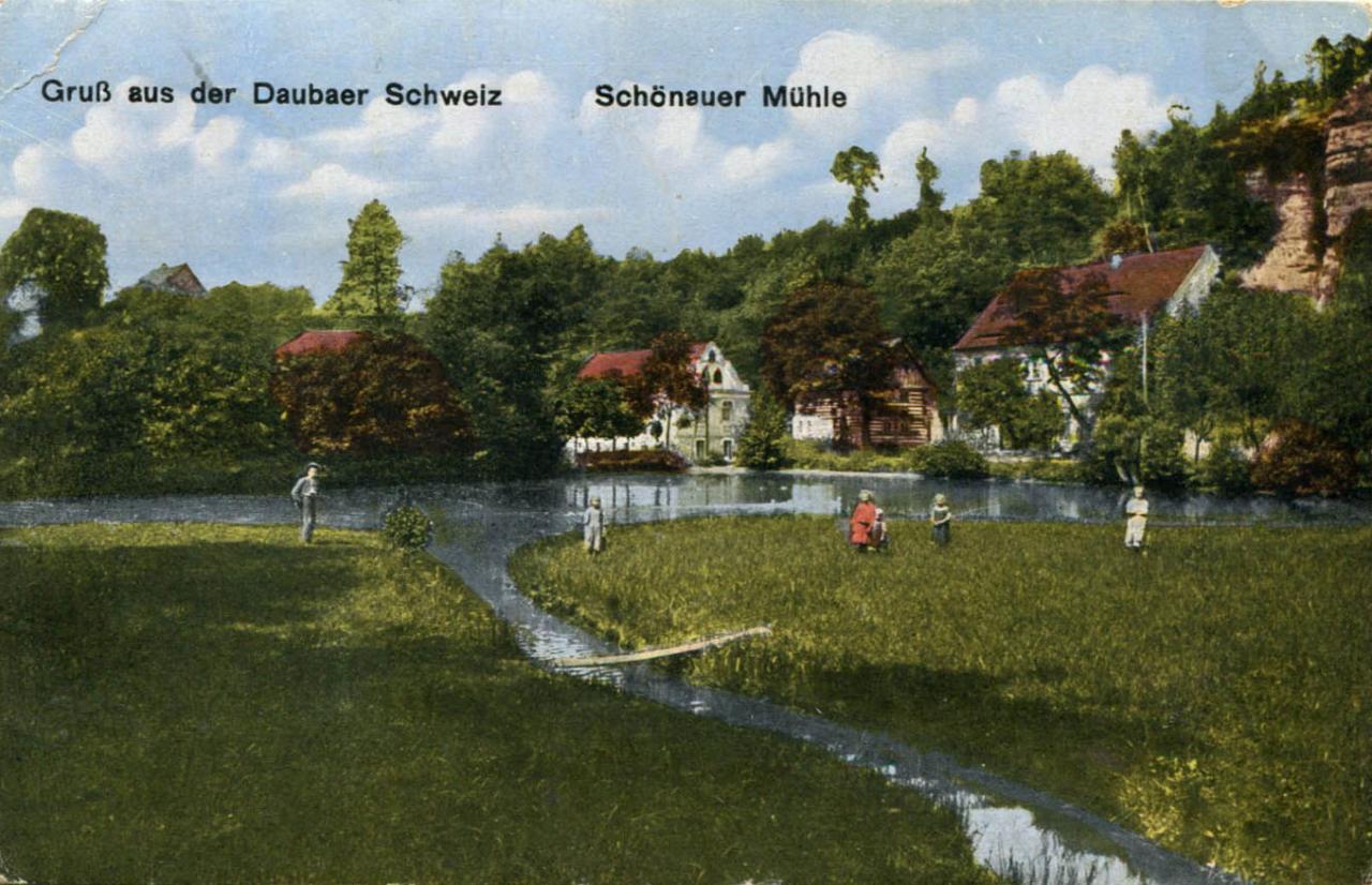 Osada, stoupající od Beškovského dolu pod Kamenný vrch, se v nejstarších záznamech jmenovala Chřenov (Chrzenow), či také Chřínov, a její osudy jsou spjaty s Nedamovem. Roku 1594 prodávali Hrzánové z Harasova housecké panství a v soupise je zaznamenán Chřenov s jedním člověkem osedlým (sedlák, který odváděl poplatky vrchnosti), chřenovský mlýn s pilou a rybník pod Chřenovem. Za 30leté války ves pravděpodobně zanikla, žádné zprávy o ní nejsou, a později byla obnovena pod názvem Schönau (však také zdejší mlýn nesl tento „přídomek“). V roce 1786 je zde zaznamenáno 17 domů a dalších sto let se počet víceméně udržel. Obyvatel bylo v průběhu 18. století okolo sta, ve 20. století počty obyvatel výrazně klesaly. V roce 1930 měl Křenov 15 domů, ve kterých žilo 61 obyvatel, všichni se hlásili k německé národnosti. Ke Křenovu patří i několik domů v Beškovském dole, dříve zvaném Kohlgraben.