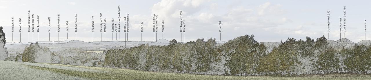 Nejen toto místo, i západní hrana vrcholku Velkého Beškovského vrchu skýtá jedinečný výhled (o vrchu samotném pojednáno na informačním panelu v blízké Panské Vsi).