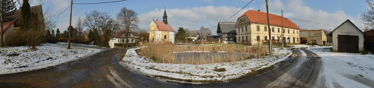 Zastávka na návsi vísky, které by se pro její výšinnou